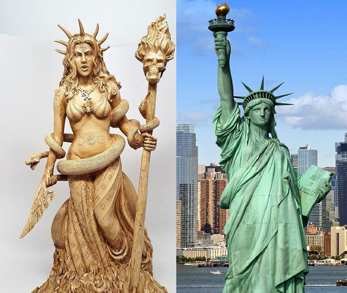 Далее, ключи от религиозной власти в Европе и мире находятся в Италии в Ватикане, т.к. Хирон в Стрельце (Италия) экзальтирует. А ещё Италию всегда называли раньше Сатурнова земля, поэтому и живём сейчас по римскому календарю. Казалось бы миром должен править мировой институт католицизма- Ватикан, но это на словах.. На деле же правит миром (пока ещё) высшая ипостась Сатурна- Прозерпина, т.е. богиня Кали-Юги. Прозерпина является символом Соединённых Штатов Америки, т.к. она в Близнецах экзальтирует. А как известно дьявол прячется в мелочах.. Многие заметили как похожа американская Статуя Свободы на статуи Гекаты и Персефоны.