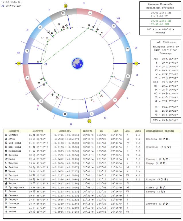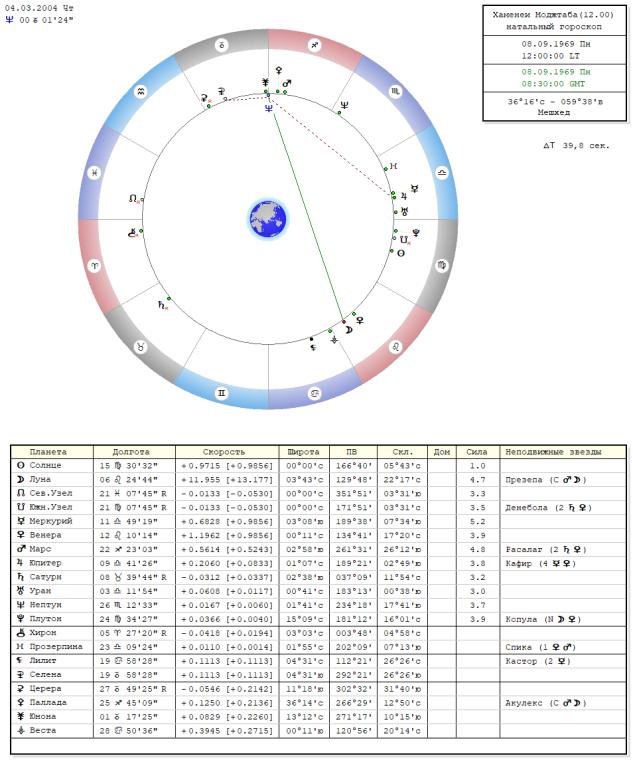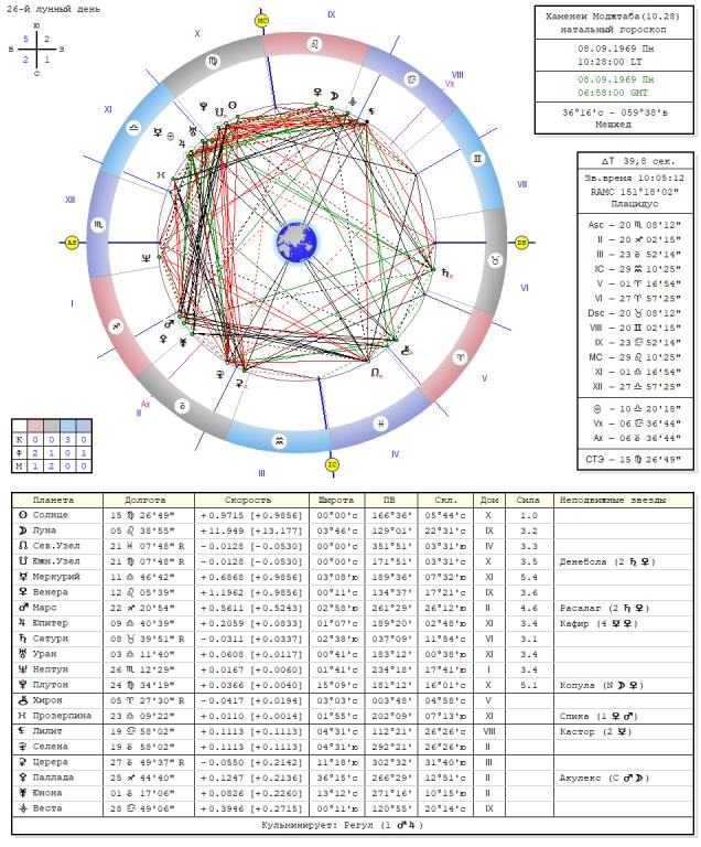 Данные гороскопа Моджтабу Хаменеи 08.09. 1969, г. Мешхед, ВР10.28, асц.20.08.Скорпиона