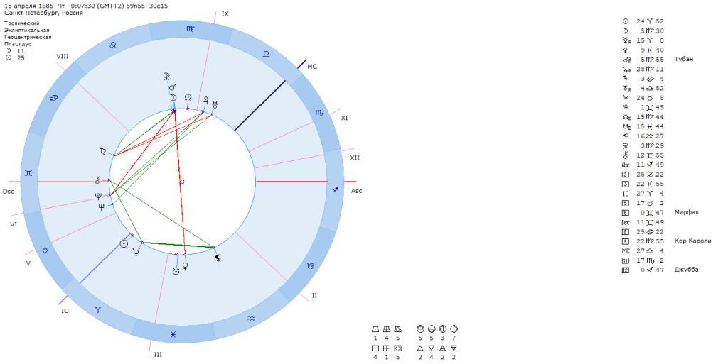 Гороскоп ректифицирован по дате гибели, дате венчания с Анной Ахматовой и дате рождения сына.