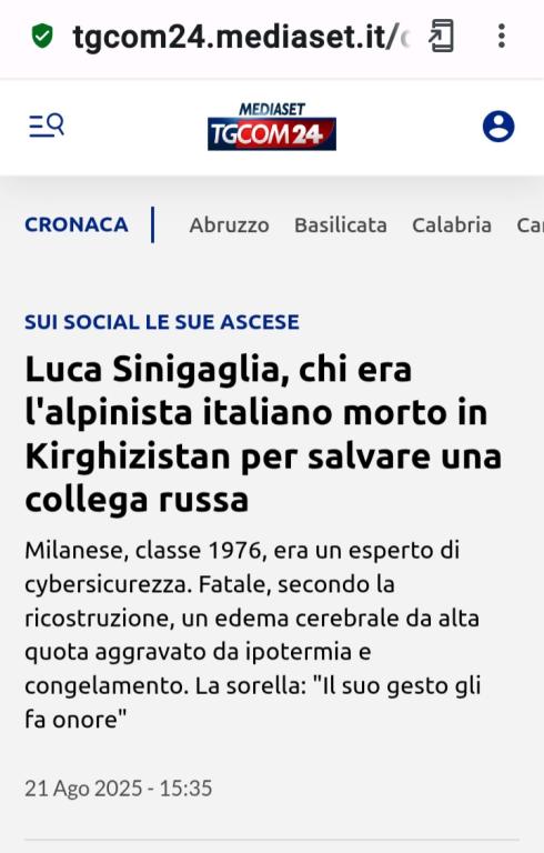Если вбиваешь в поиск именно его сестру, то да, выскакивают ссылки на итальянские газеты, где ему 50. Но да, важно правильно все перевести, я в итальянском не рублю. В La Repubblica вообще интересно (именно оттуда интервью, и я не увидела, чтобы именно сестра сказала, что ему 50). Изначально пишут, что ему было 49, а потом про сестру: «Патриция Синигалья- сестра Луки, 50-летнего альпиниста из Мельцо (глубинка Милана)». Такое ощущение, что они сами запутались в том, сколько лет ему было, либо нужно знать тонкости итальянского))