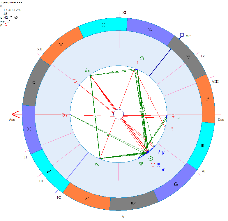 Полностью согласна. Если анализировать дома классически, например, 6 дом болезни, то это должен быть 6 знак от Ас. Знак, который не видит знак 1 дома, а планеты в Весах 120 Ас в Близнецах. Если и искать интересности 6 дома, то это явно хозяин 6 Марс: угловой по градусам, выше всех в карте, перегрин, находится прямо на Узлах, влияет на 12 дом (от Водолея 4 знак Телец).