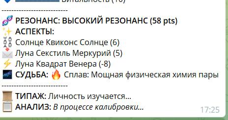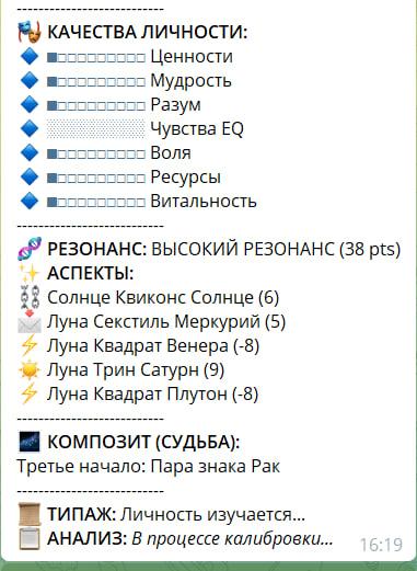 Собираюсь создать приложение знакомств, возникла мысль использовать синастрию как базу для метчингов(совпадений, симпатий) чтобы получить эффект вау от пользователей. При регистрации берется основа как дата рождения(ее могут указать неверно), психологическое тестирование, так и психографический анализ объемного текста "о себе". Сама психография довольно точна, и может с 75% вероятностью дать психотип на разных уровнях проявления человека (кроме физической внешности), но методы сравнивания ее между участниками пока не ясны. В теории все понятно: Участник ответил на вопрос о комфорте что ему важна "материальная уверенность" значит венера где-то в земном знаке - присваеваем + к стихии земли, и так по каждому уровню(марс, солнце, луна, меркурий. начиная от юпитера/сатурна - выше не берем - мало что влияет в контексте быстрых встреч) определяем стихийность и суммируем баллы.