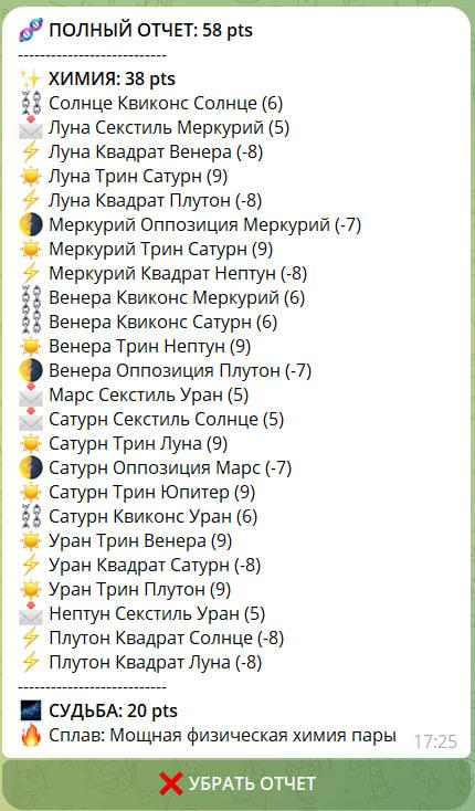 Причем как большинство показывает, такие неточные сервисы их сводят с теми людьми, которых они УЖЕ ЗНАЮТ, но что-то не пошло. Т.е. астрология без времени вроде и попадает что они резонируют как-то, но вот характер этого резонанса не знает. Сейчас уже больше склоняюсь к композитам, у них более интересные описания для парной судьбы.