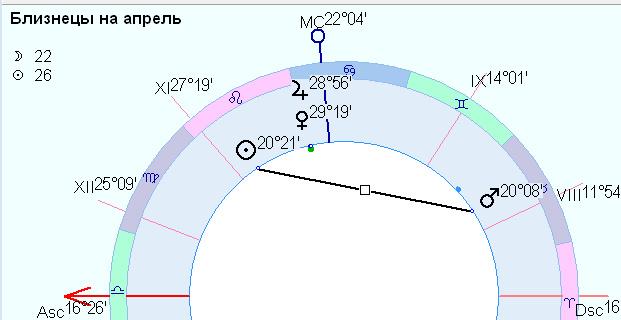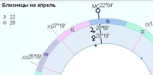 .... Плутон связан с восьмым домом. через Луну.. Луна -Плутон это как бы нехорошее сочетание. В данном случае, здесь рулит Венера с Юпитером. И Солнце с Марсом в 10 м доме… Но не могут же все близнецы начинать рожать в апреле. Это связано скорее с хорошими деньгами. с выигрышами, с удачными сделками. Пусть у близнецов всё это будет в апреле. Почти королевский подарок в апреле. Я хочу связаться в прямом эфире с Близнецами в апреле, чтобы вы рассказали – как у вас все это реализуется…